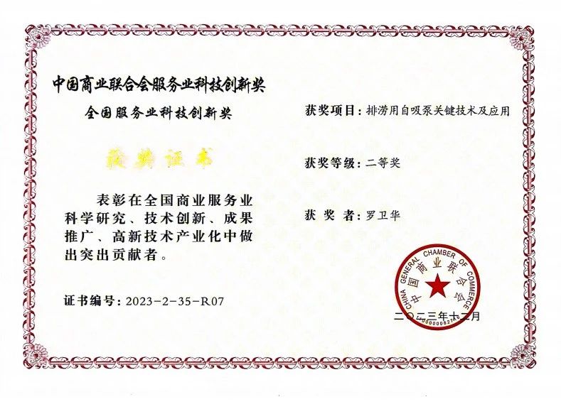 7月21日,中國(guó)商業(yè)聯(lián)合會(huì)主辦的2024年全國(guó)商業(yè)科技質(zhì)量大會(huì)在北京召開。本次大會(huì)主題是“聚焦新質(zhì)生產(chǎn)力 賦能行業(yè)高質(zhì)量發(fā)展”。貝德科技集團(tuán)總經(jīng)理羅衛(wèi)華研發(fā)的“排澇用自吸泵關(guān)鍵技術(shù)及應(yīng)用”榮膺中國(guó)商業(yè)聯(lián)合會(huì)服務(wù)業(yè)科技創(chuàng)新獎(jiǎng)二等獎(jiǎng)。